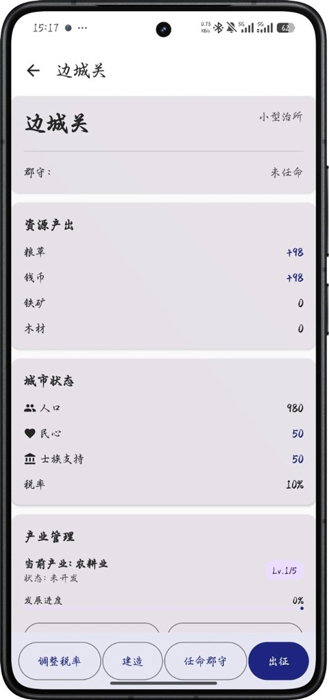 5、之后你就需要处理好内政,让你的城池越来越强大。