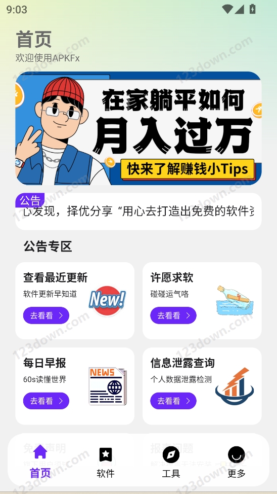 APKFx软件库和猪猪软件库差不多,主要是以收集整合网络热门免费资源为主,分区详细,支持以蓝奏云、夸克等方式保存,所有软件、游戏、小工具都是经过官方测试过的,安全无病毒,后续也会持续不断的为大家更新上新数据,感兴趣的小伙伴么可以来本站下载体验!