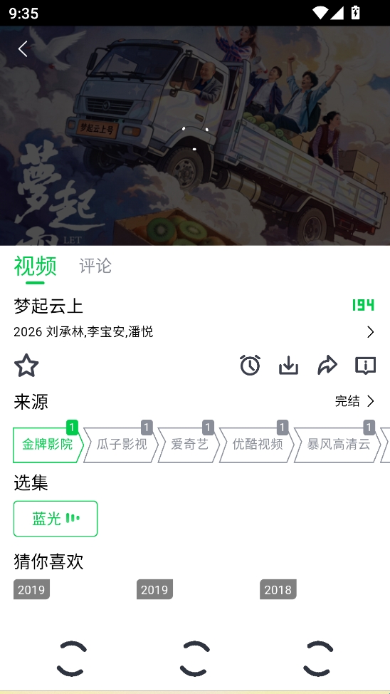 2、如图等待加载即可追剧,还可以切换影视源、缓存、投屏等操作