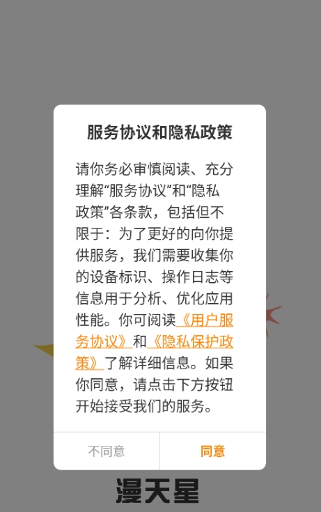 1、下载安装打开app,第一次需要点击同意。