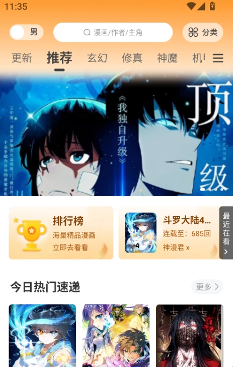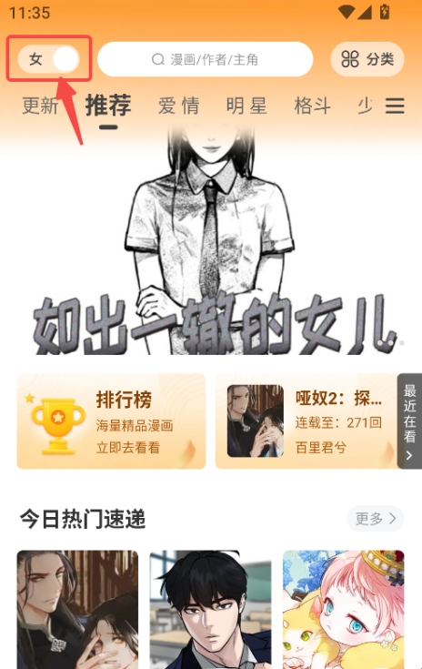 4、进入主页可以查看推荐的漫画。