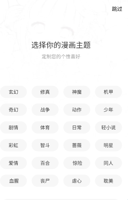 3、继续选择你的漫画主题,定制您的个性喜好。