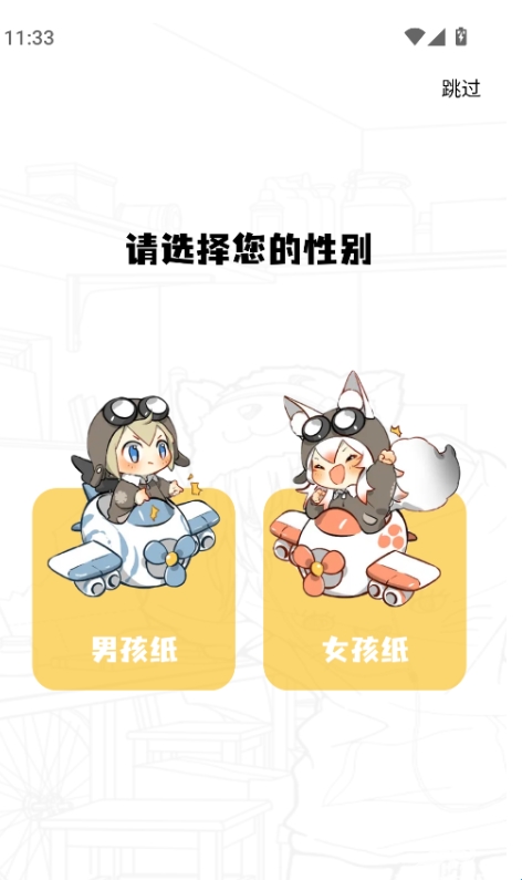 2、进入后选择自己的性别,也可以点击右上方的跳过。