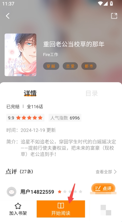 8、点击漫画封面即可进入详情页,在详情页可以点击开始阅读。